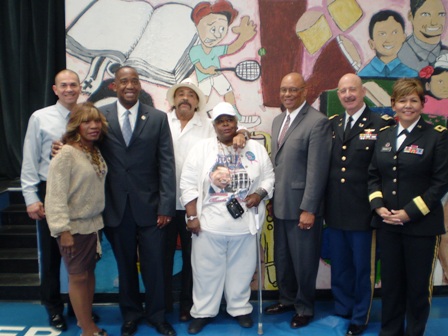 Shown in the photo are participants at the 2012 Consumer Education and Resource Fair: Edwardo Martinez, Consuella Mackey, André Birotte Jr, Ricky Ricardo, Dr. Sandra Moore, Brian Stiger, Brigadier General Sylvia Crockett of the California National Guard, and Major Jay Coggan of the California National Guard